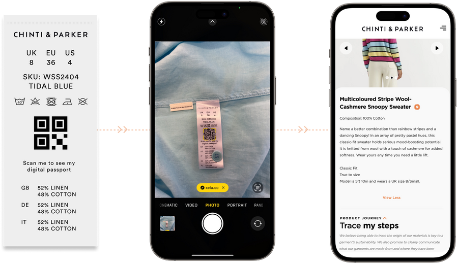 We are excited to introduce our first collection featuring Digital Product Passports (DPP). This innovative initiative allows you to access detailed information about the materials used and the environmental impact of each garment. Simply scan the QR code on the product label to explore our sustainability credentials and learn more about our commitment to transparency.
