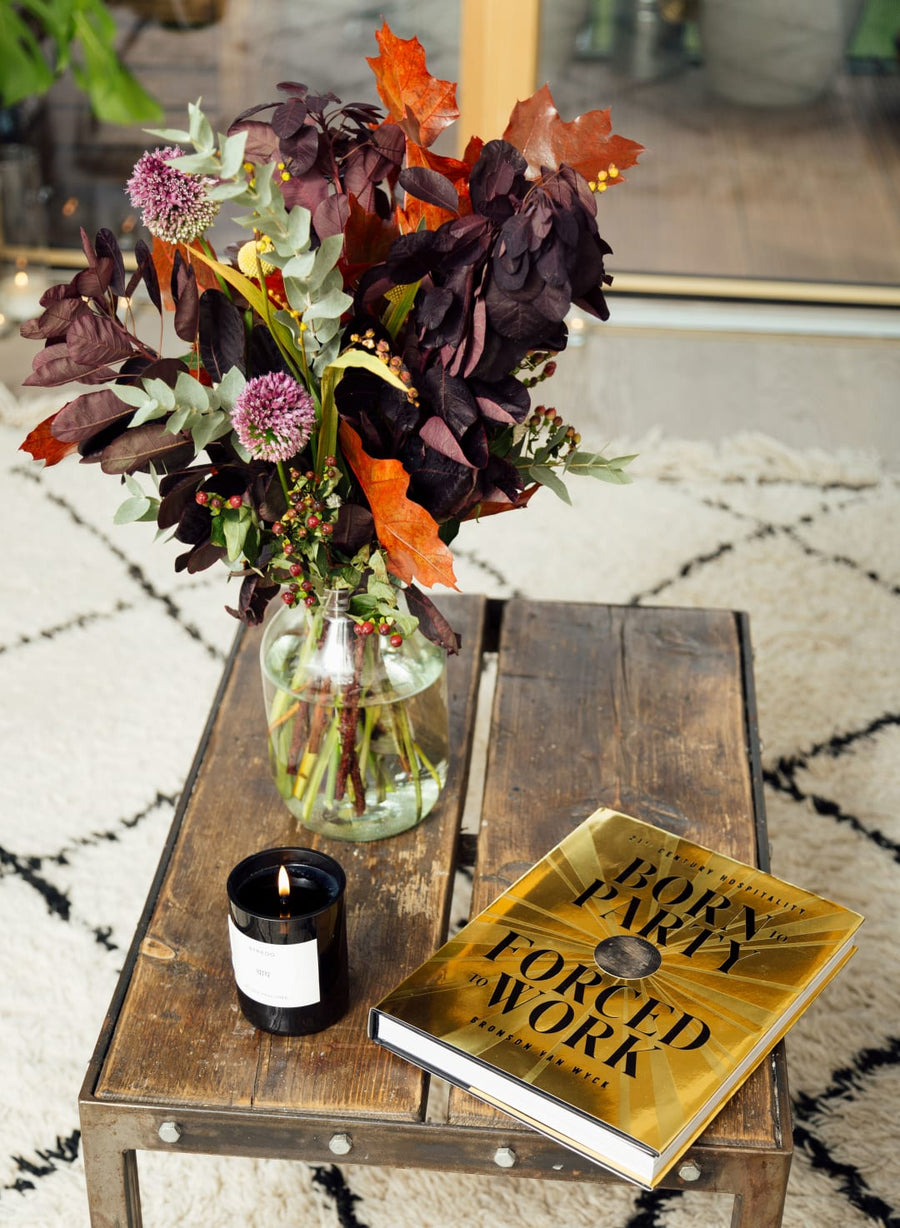 Big bunches of foliage are a good way of decorating. Eucalyptus is my favourite, for its fresh smell. I live close to the Flower Warehouse in Hackney, but I do also enjoy an early morning trip to New Covent Garden Market – it’s worth the dawn alarm.