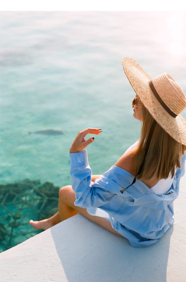 Whether you’re jetting off to soaring temperatures or staying relatively local, don’t forget to apply SPF daily. Yes, even if there are clouds in the sky. Opt for a light and non-greasy SPF for daily application. If you’re spending time on the beach or by the pool in full sun, be sure to apply a minimum of factor 30 SPF regularly throughout the day.