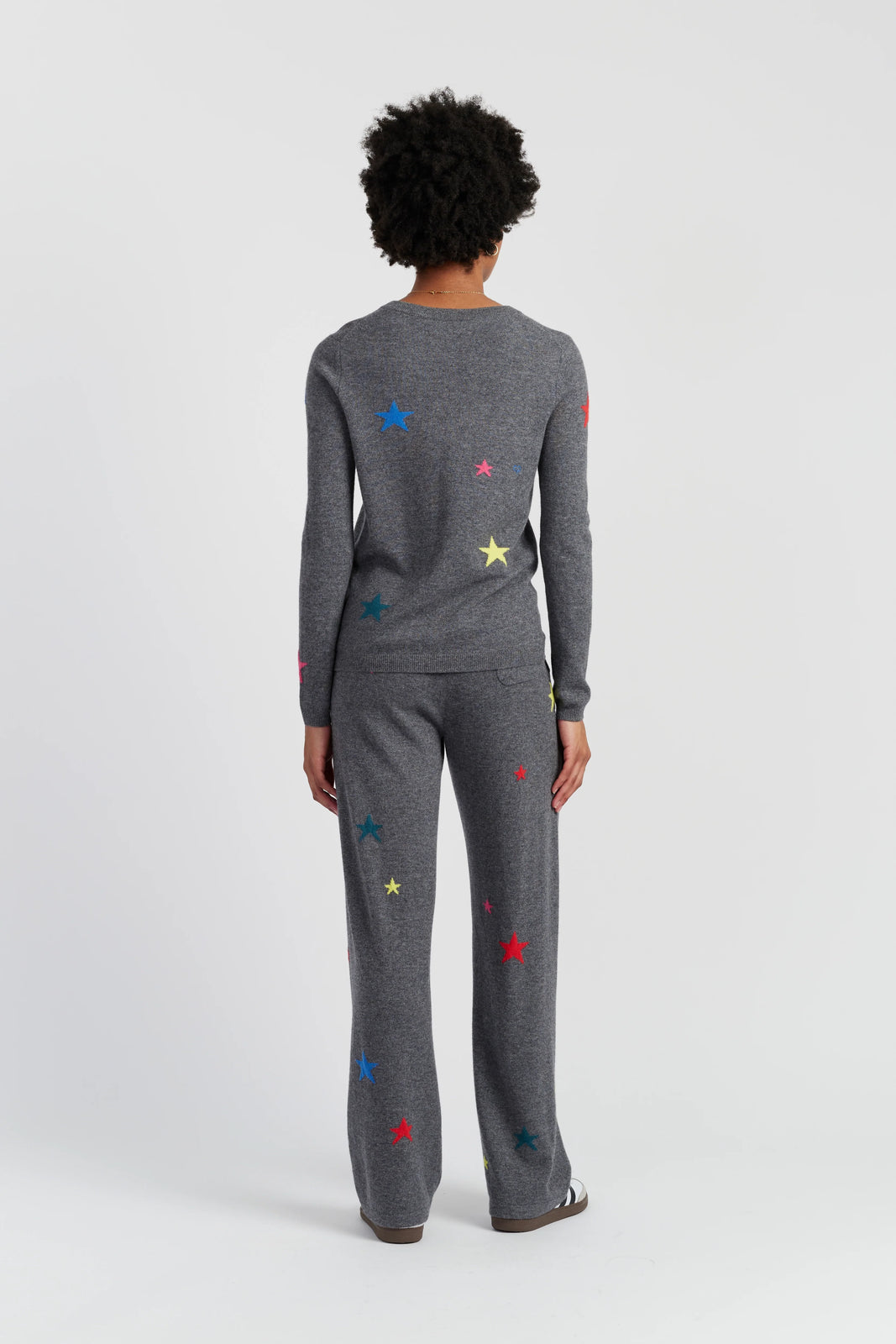 Embrace Chinti and Parker signature stars this season in a brand new shape. Finely knitted from a blend of wool and cashmere, these wide-leg pants shape a flattering silhouette. Featuring a rainbow hue intarsia this track pants can be worn with one of the coordinating sweaters from the collection.