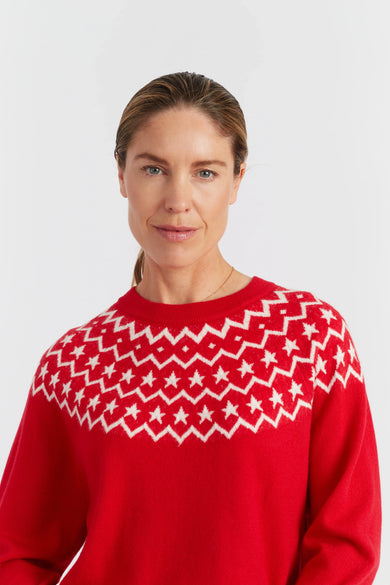 Velvet-Red Wool-Cashmere Star Yoke Sweater