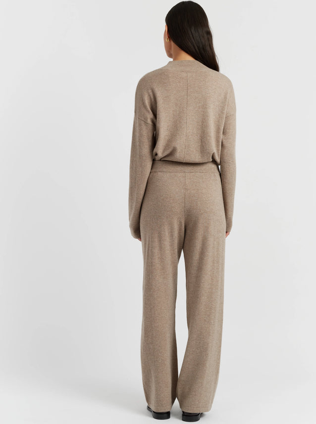 Warm-Oatmeal Pure Cashmere Wide-Leg Pants