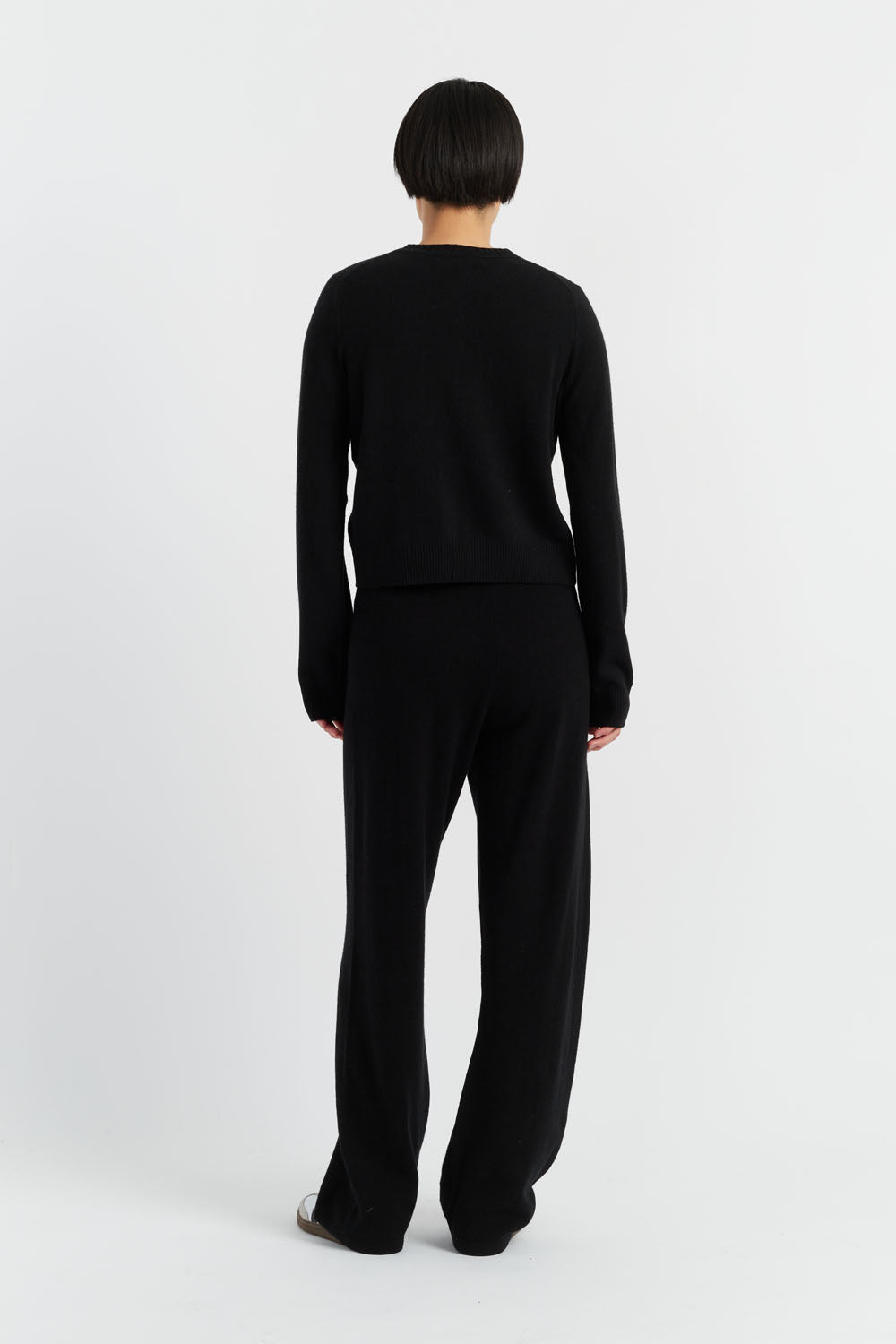 This cardigan is our new addition to the BASICS collection and will make a useful yet chic addition to any knitwear collection. It is finely knitted from a blend of wool and cashmere, giving it the perfect handle for all seasons. The classic black colour makes this a truly failsafe choice. Team it with the coordinating track pants.