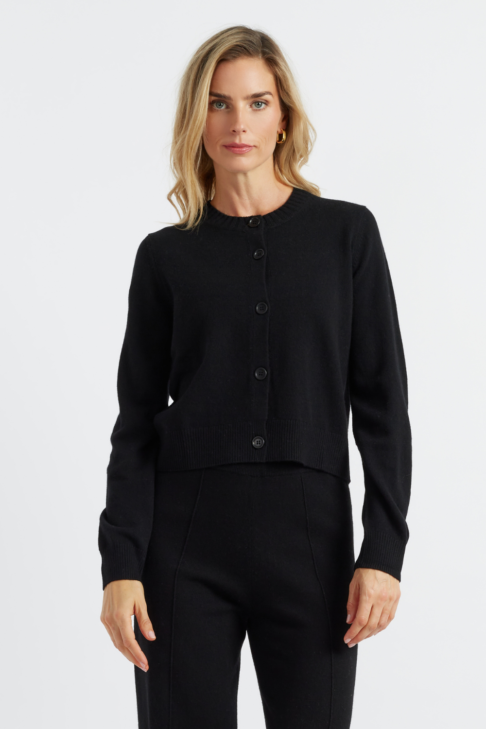 The Black Wool-Cashmere Crew Neck Cardigan is a Regular.