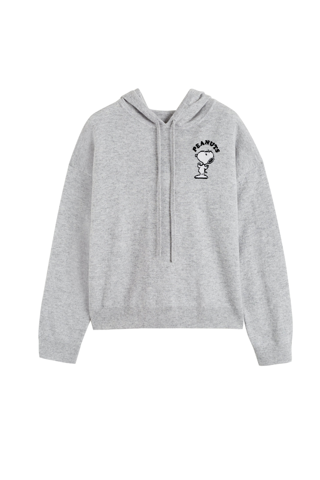 The Light-Grey Wool-Cashmere Peanuts Athletics Dpt Hoodie is a Relaxed.