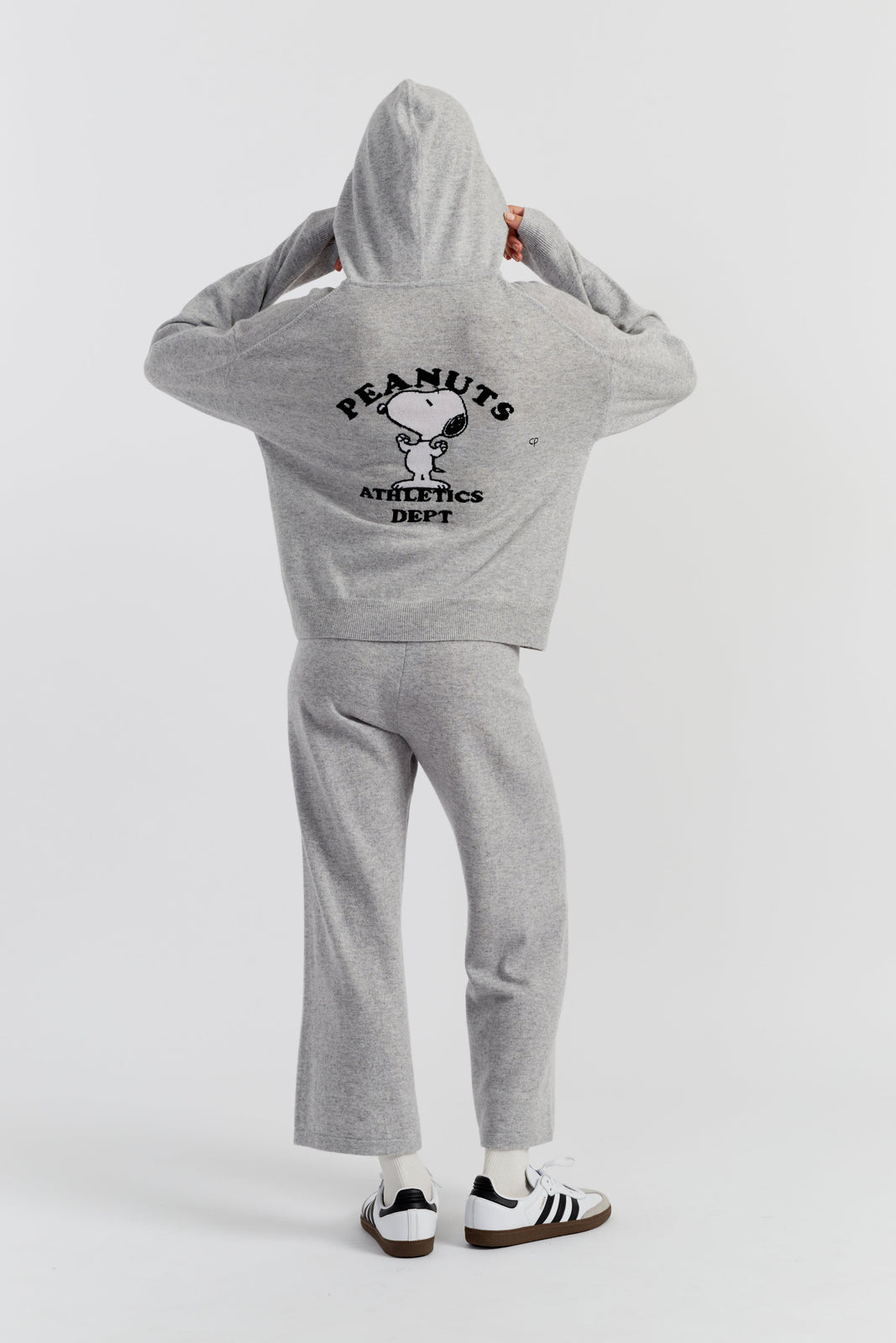 A laid-back essential with a luxe twist. This light grey hoodie is crafted from a soft wool-cashmere blend and embroidered with the Peanuts Athletics logo. Cut for a relaxed fit, it’s the perfect off-duty piece for cozy, characterful style.Crafted from soft cotton fleece, these cream sweatpants offer a clean, timeless base for off-duty dressing. With an easy fit and elasticated trims, they’re designed for all-day comfort — style with the coordinating sweatshirt for the full Peanuts set.