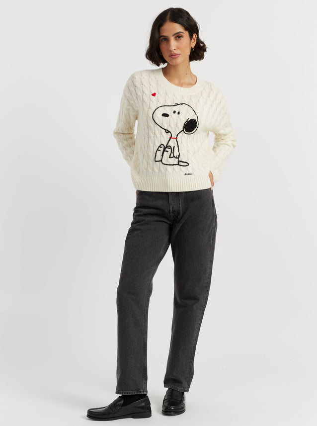 Cream Wool-Cashmere Snoopy Cable Sweater