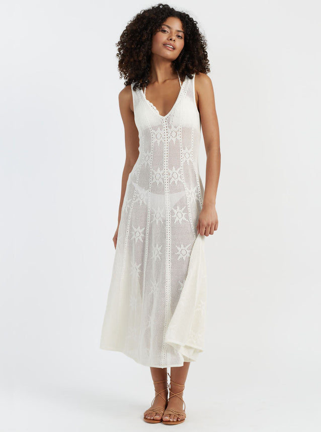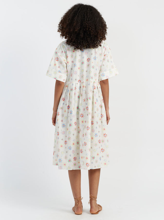 SAMPLE SALE - NO REFUNDS Cream Linen-Cotton Etoile V-Neck Sundress