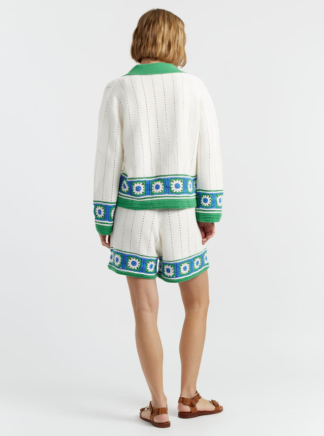 Cream Wool-Cashmere Peanuts Poker Cardigan