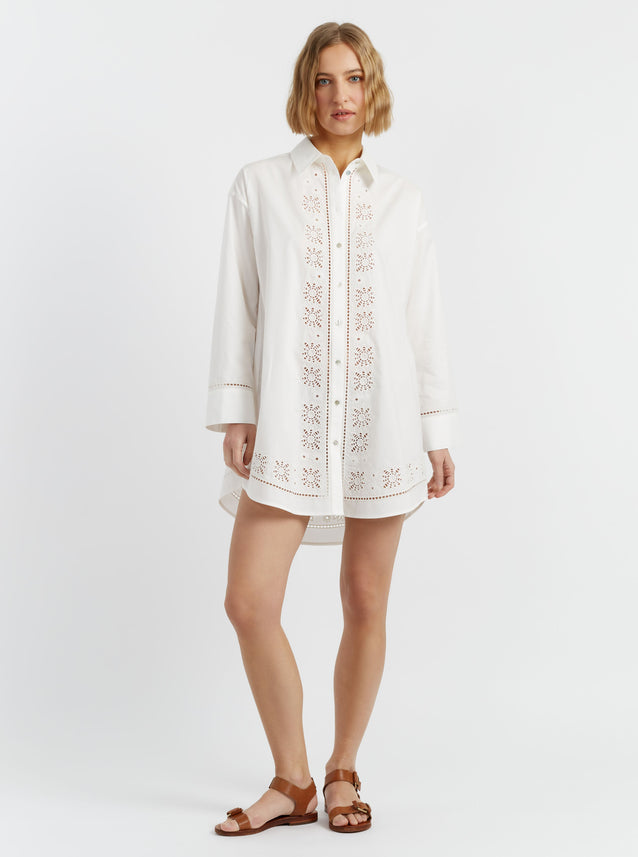 SAMPLE SALE - NO REFUNDS Cream Cotton-Lyocell Broderie Shirt Dress