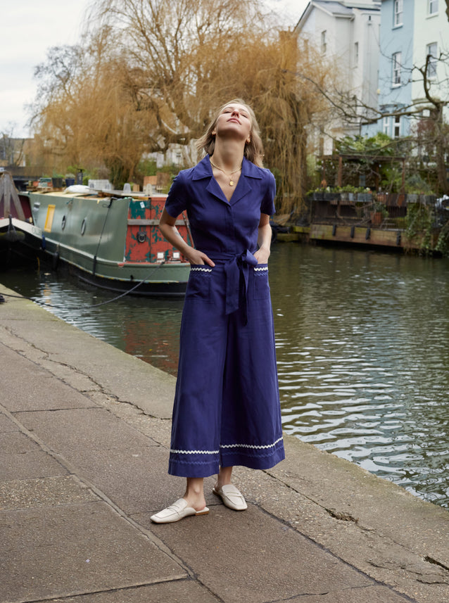 SAMPLE SALE - NO REFUNDS Blue Tencel-Linen La Mer Jumpsuit