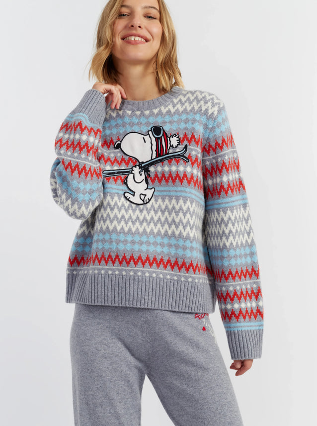 Grey Wool-Cashmere Snoopy & Charlie Brown Cardigan