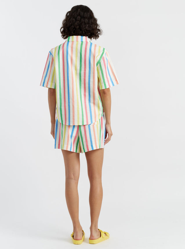 SAMPLE SALE - NO REFUNDS Multi Linen-Cotton Snoopy Stripe Shorts