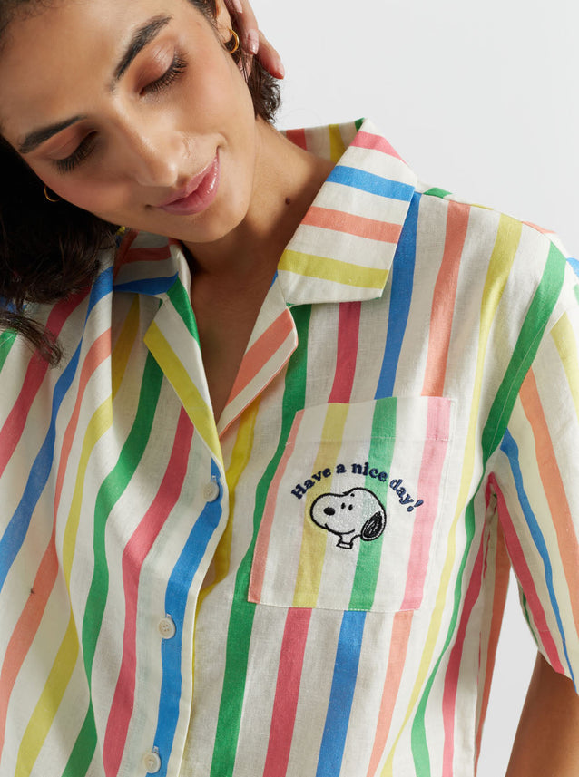 SAMPLE SALE - NO REFUNDS Multi Linen-Cotton Snoopy Stripe Shirt