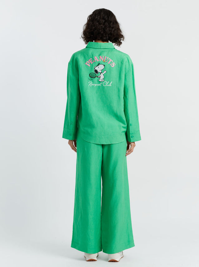 SAMPLE SALE - NO REFUNDS Green Linen-Cotton Peanuts Racquet Club Trousers