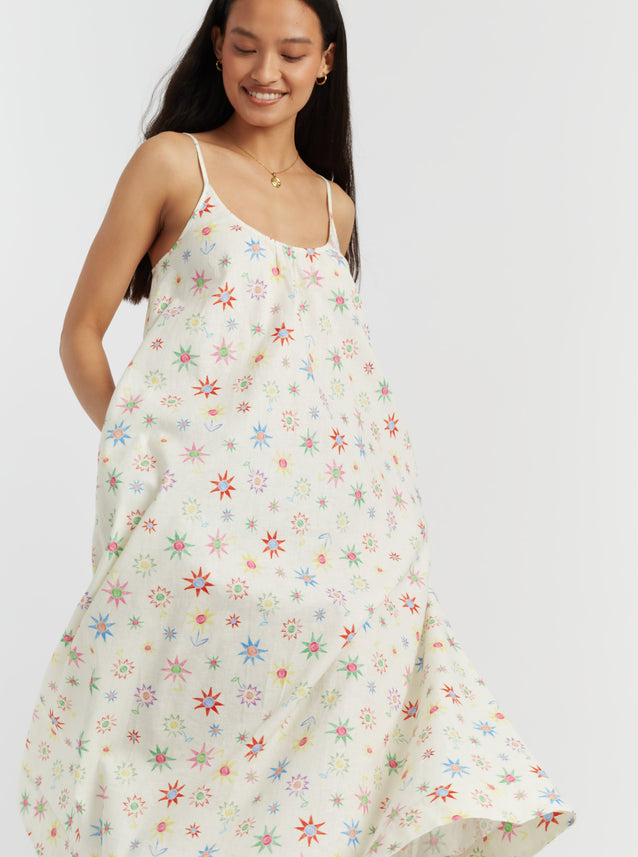 SAMPLE SALE - NO REFUNDS Cream Linen-Cotton Etoile Sundress