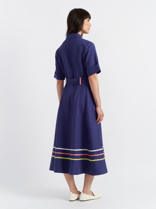 SAMPLE SALE - NO REFUNDS Blue Tencel-Linen Starboard Dress