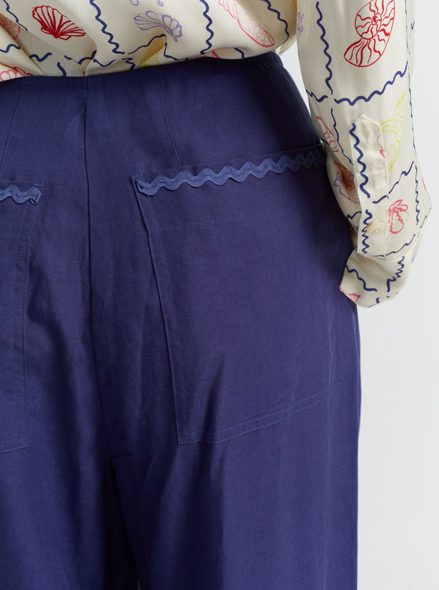 SAMPLE SALE - NO REFUNDS Blue Tencel-Linen Pleat Trousers