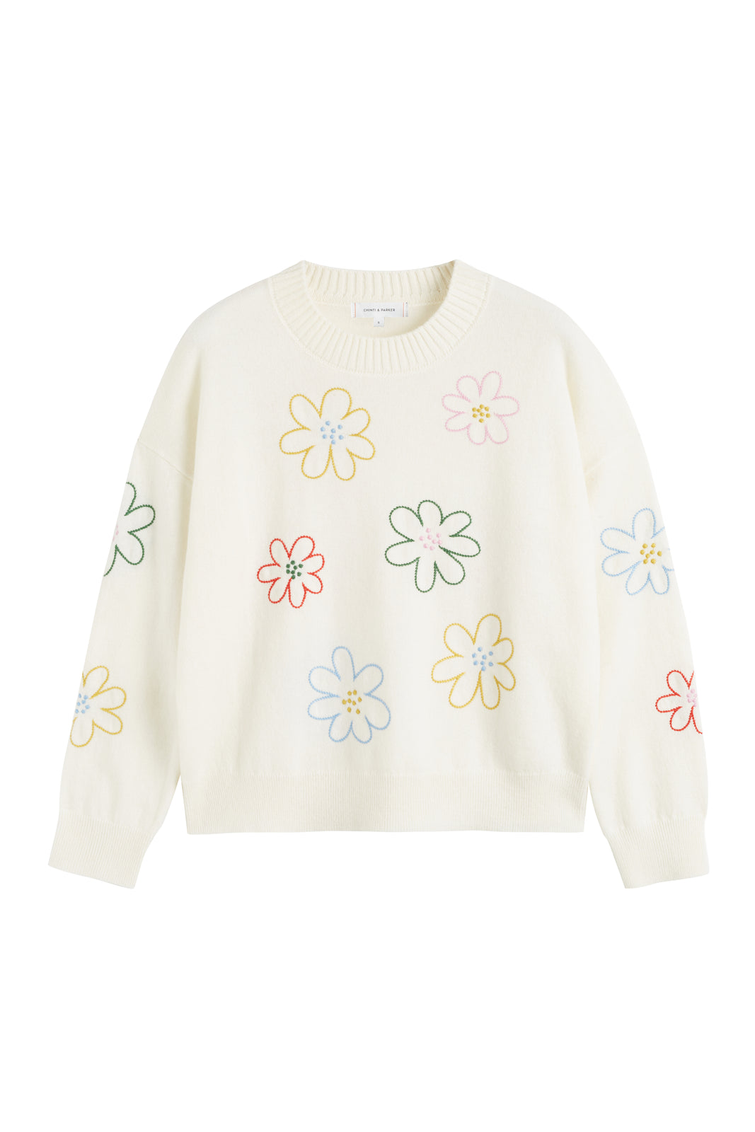 The Cream Wool-Cashmere Garden Flowers Sweater is a Relaxed.
