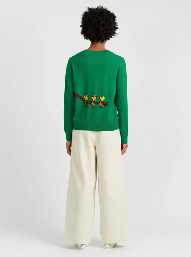 Emerald Wool-Cashmere Snoopy Peek Cardigan