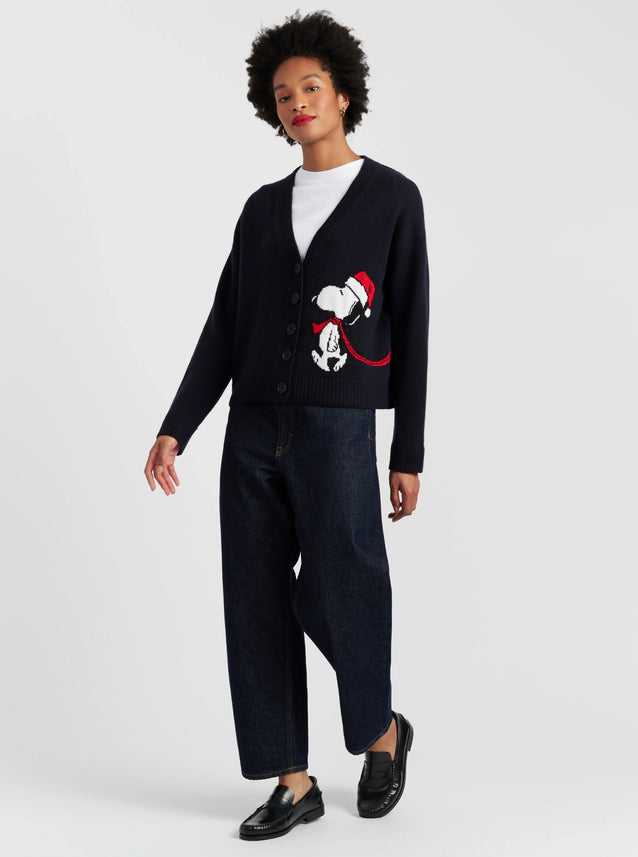 Grey Wool-Cashmere Snoopy & Charlie Brown Cardigan