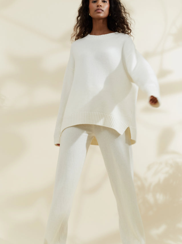 Depending on the season you’re styling for, play with different weights and styles - your knitwear doesn’t have to be reserved for the colder months. In spring, forego the jacket and opt for a light cashmere jumper over a blouse paired with a skirt.