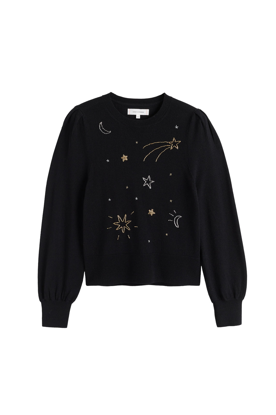 Shine bright this season in our party-ready celestial sweater. Spun from a soft merino wool it features delicate gold star embroidery that shimmers subtly under evening lights.