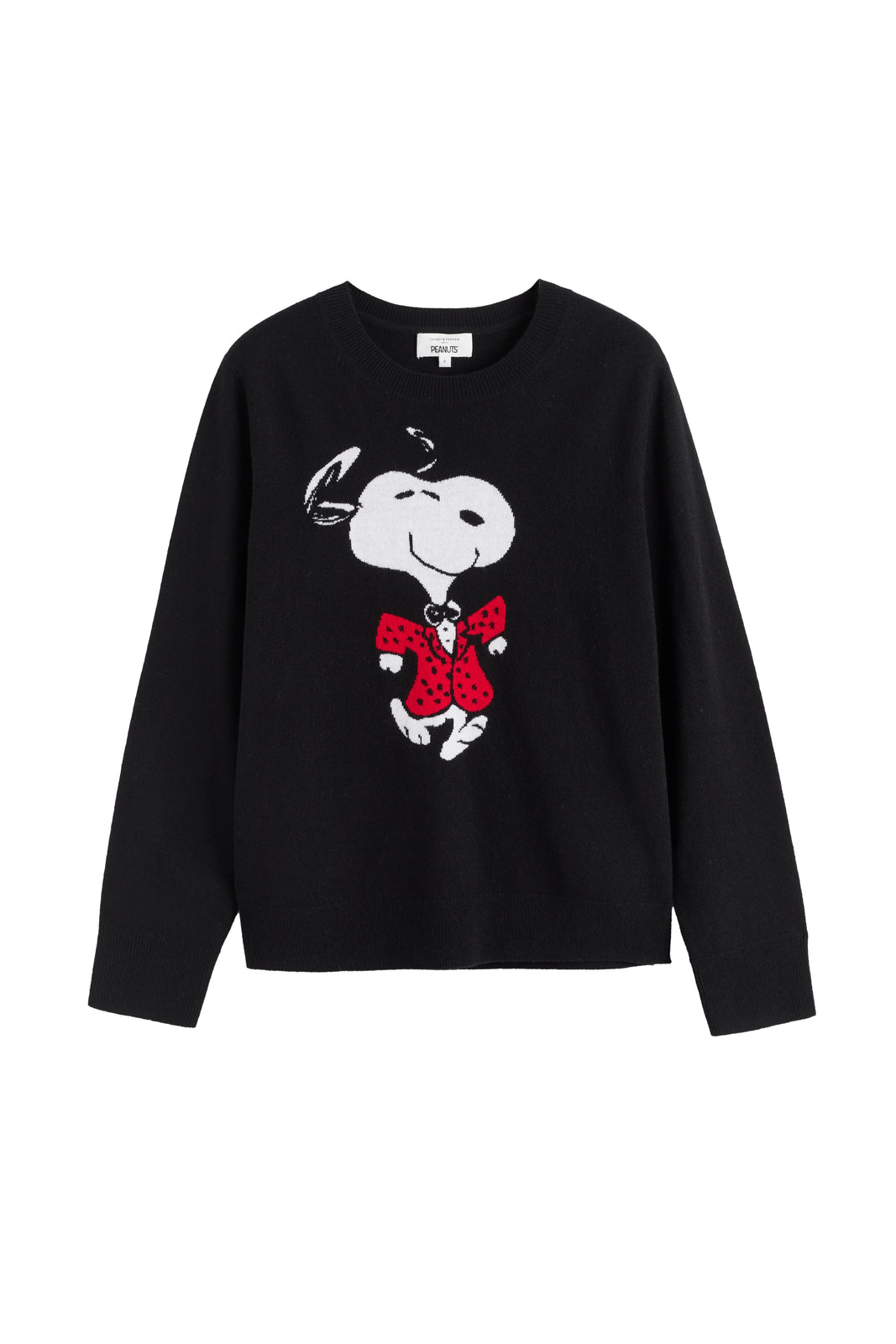 The Black Wool-Cashmere Dancing Snoopy Sweater is a Classic.