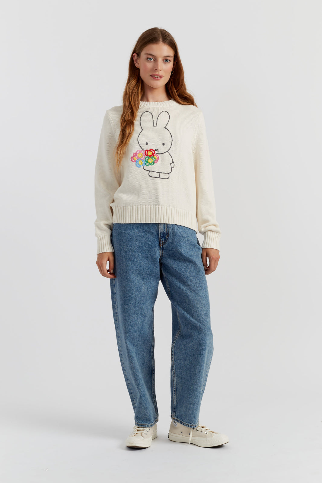 The Cream Cotton Miffy Hand Embroidered Sweater is a Relaxed.