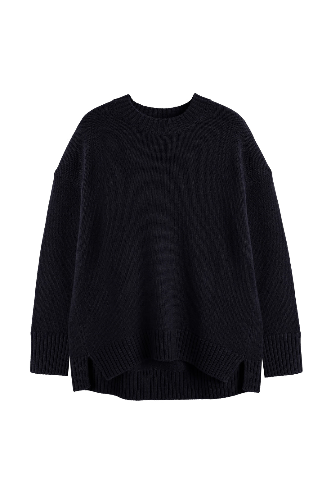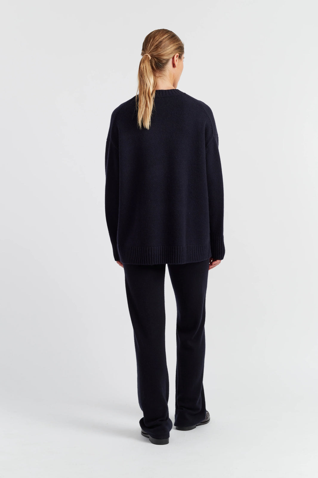 The Navy Pure Cashmere Crew Neck Sweater is a Oversized.