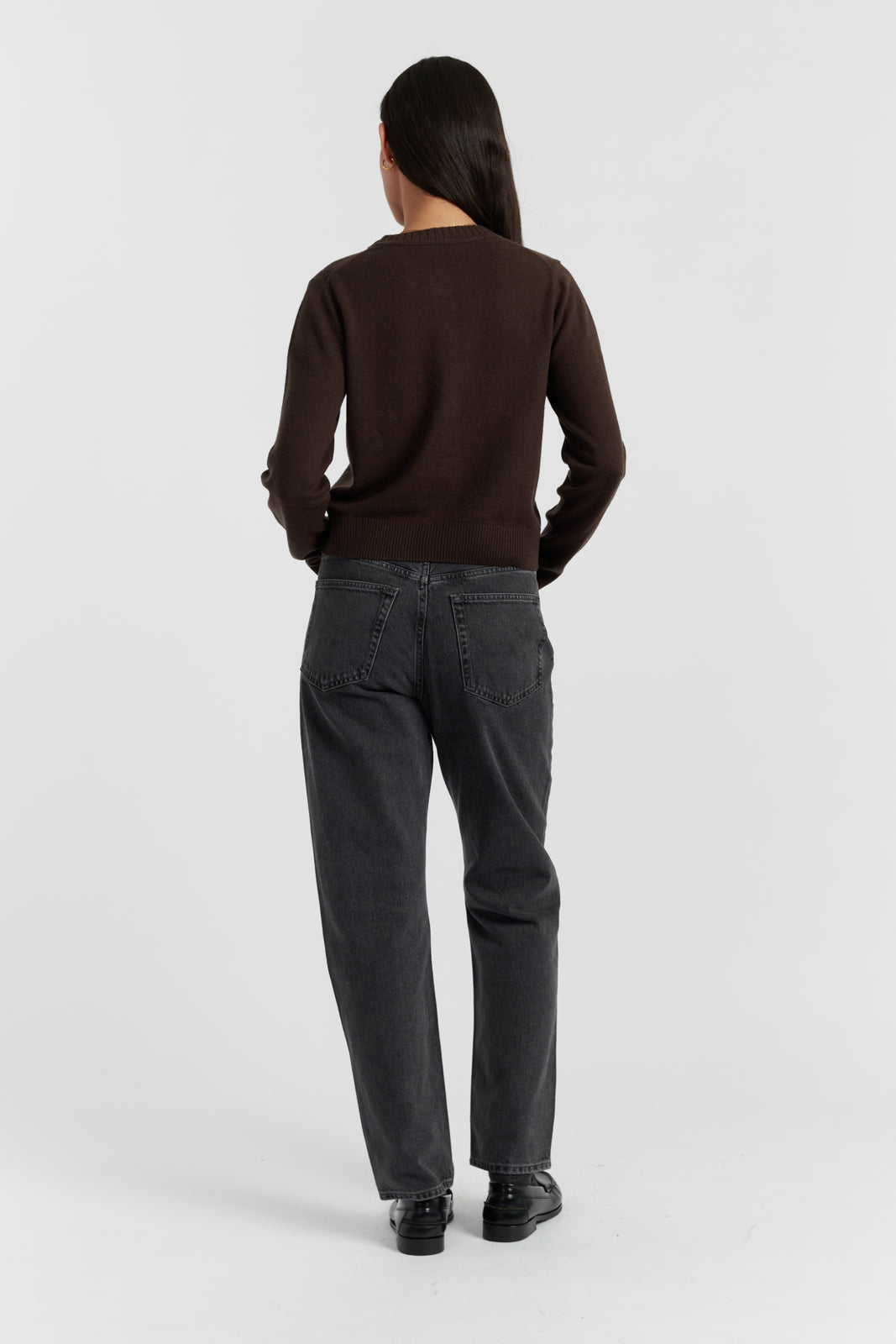 The Chocolate Wool-Cashmere Crew Neck Cardigan is a Classic.