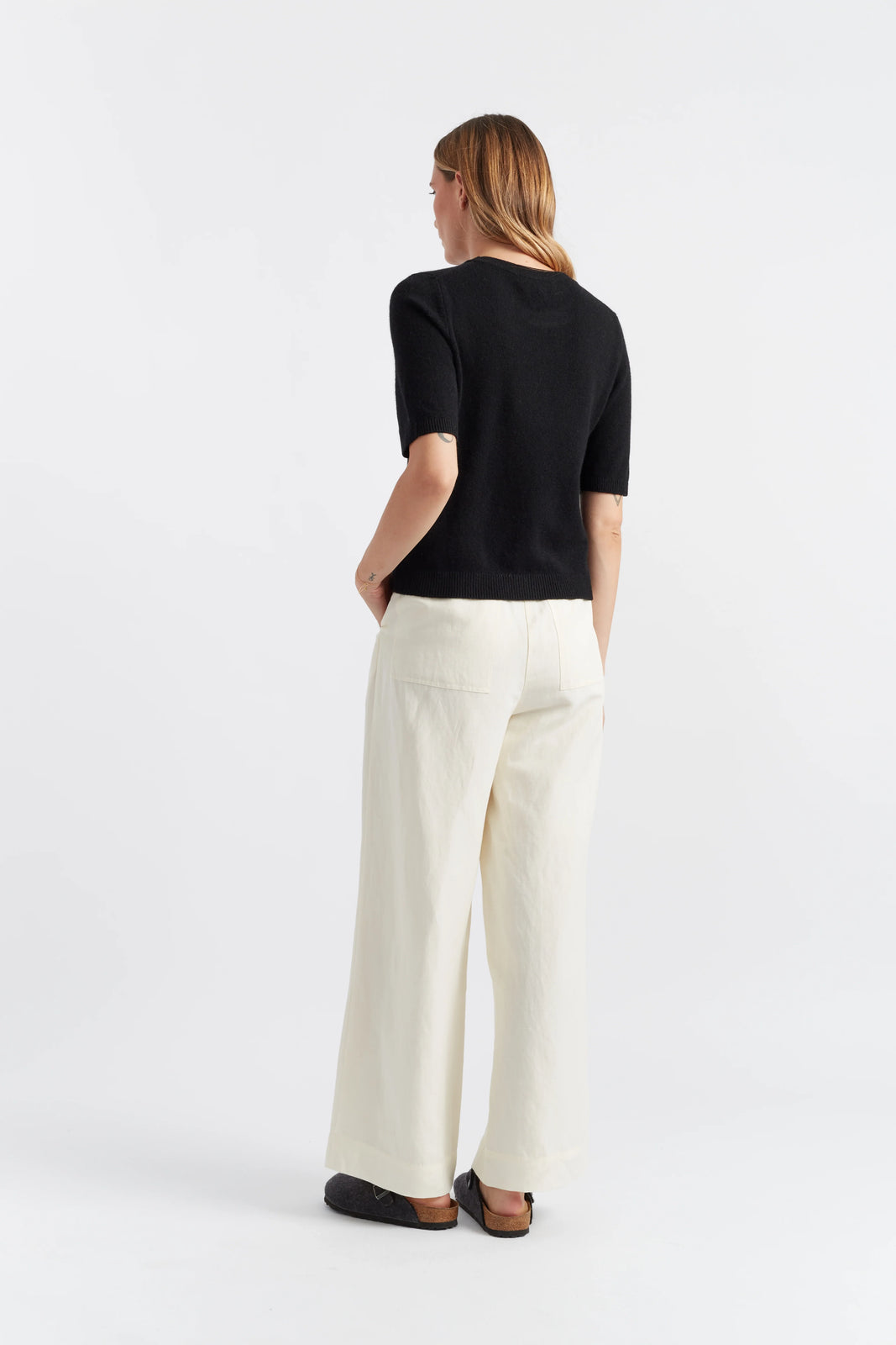 A new addition to our Summer Cloud Cashmere range, this kitted tee is our seasonal must have. It is finely knitted from ultra fine cashmere in a classic shape making it a perfect layering piece during colder days.