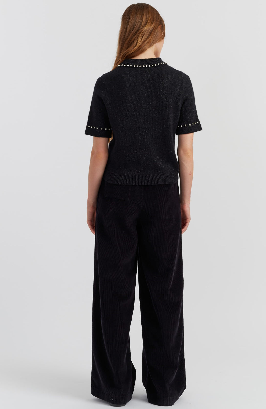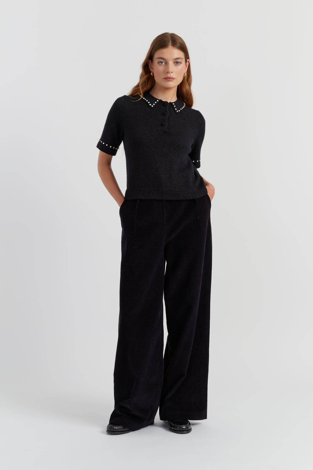 The Black Wool-Cashmere Diamonte Polo Top is a Classic.