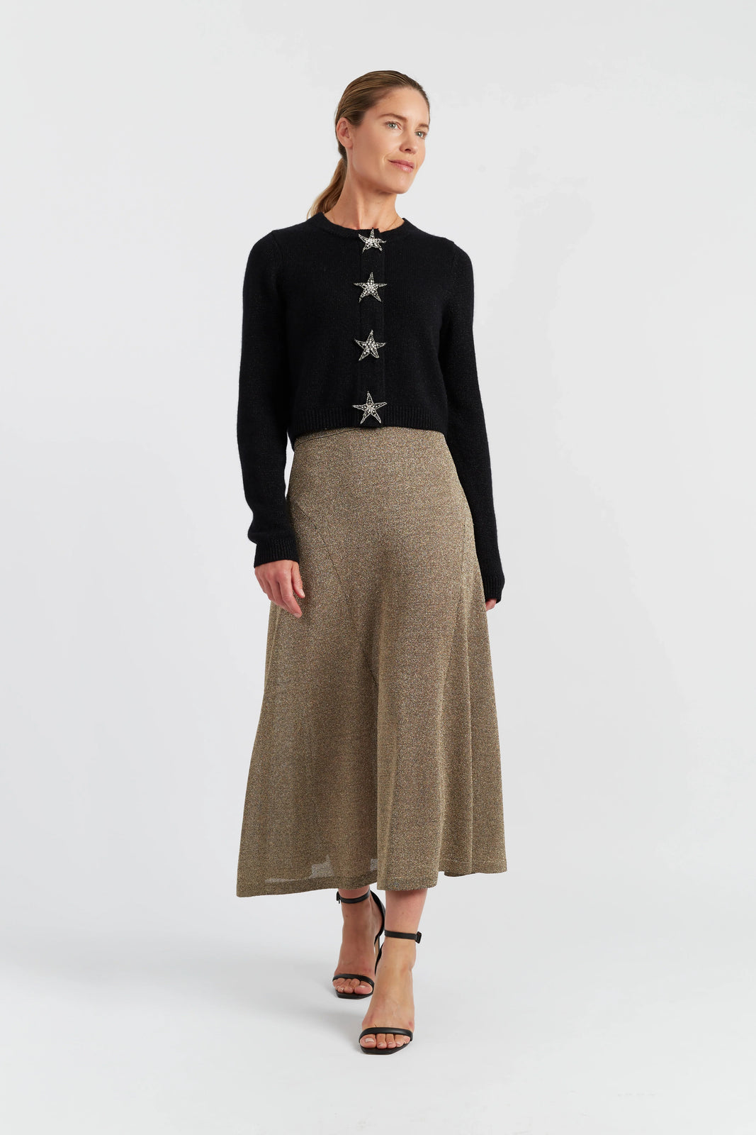 A little sparkle goes a long way. This elegant cardigan is knitted in a soft merino-cashmere blend and finished with statement star-shaped buttons — perfect for layering over your party looks.