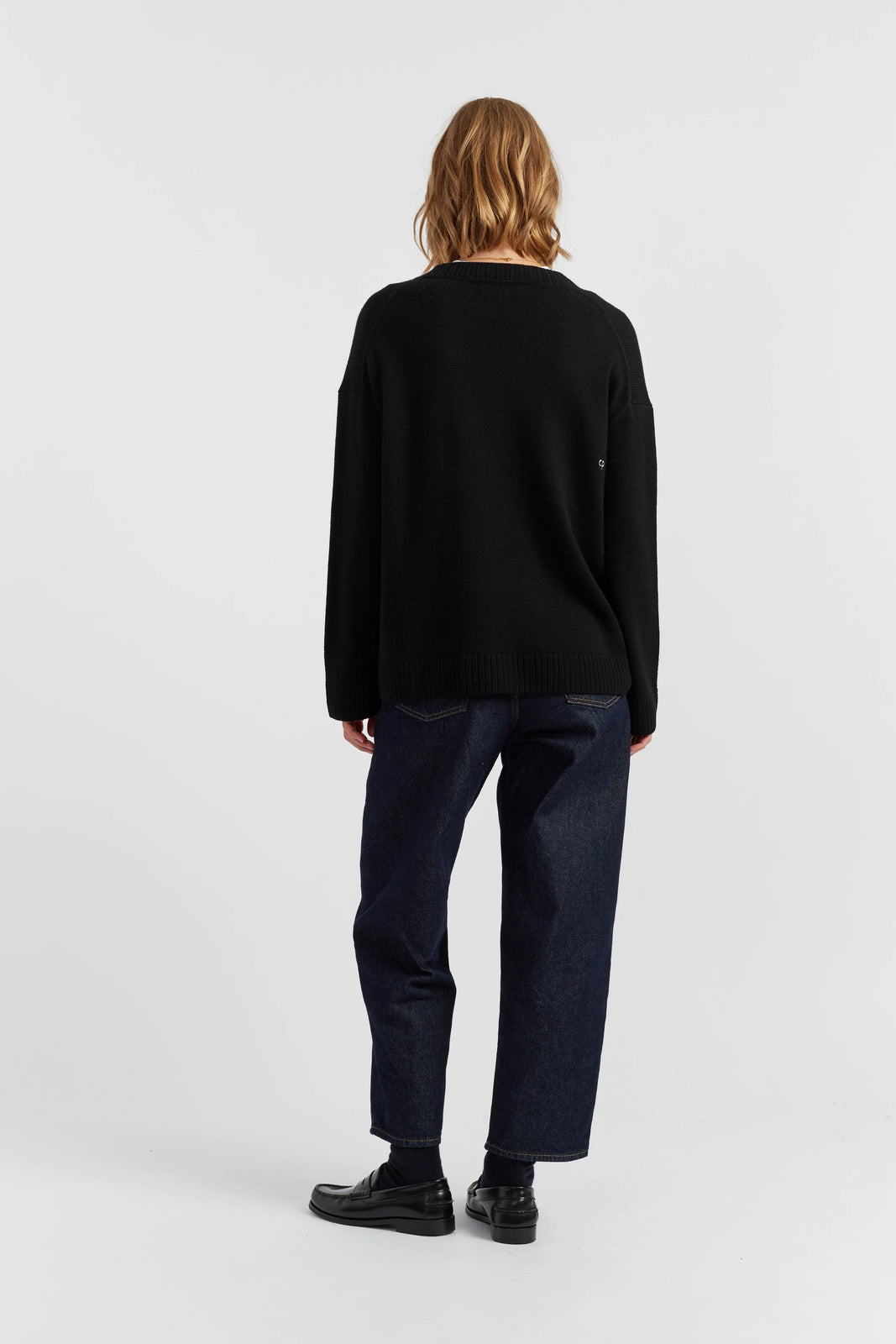 The Black Wool-Cashmere Snoopy Peek Pocket Cardigan is a Slouchy.