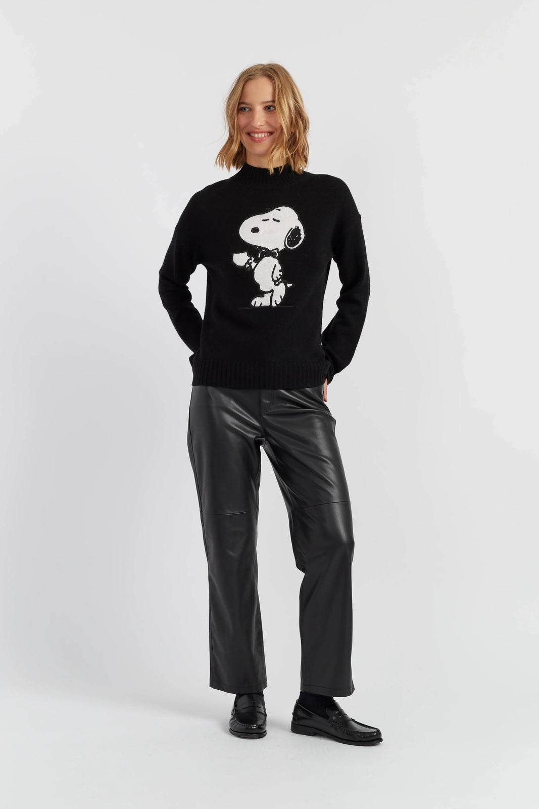 The Black Wool-Cashmere Tea Time Snoopy Sweater is a Relaxed.