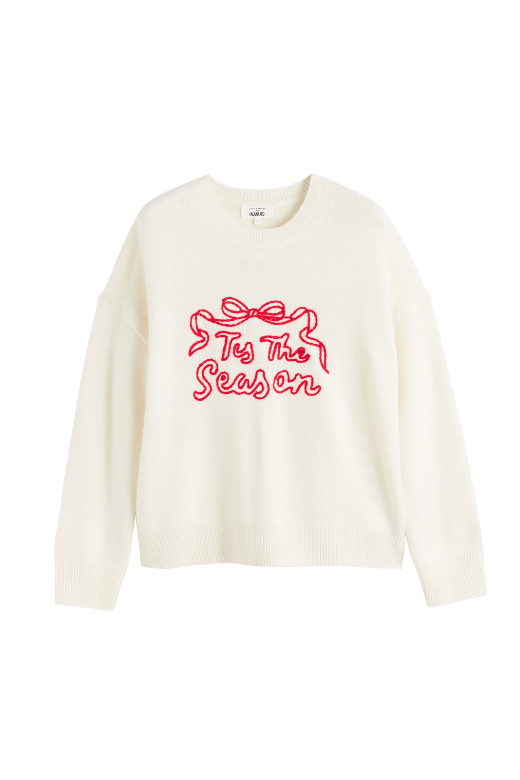- Hand embroidered ''Tis the Season' and bow motif to front chest