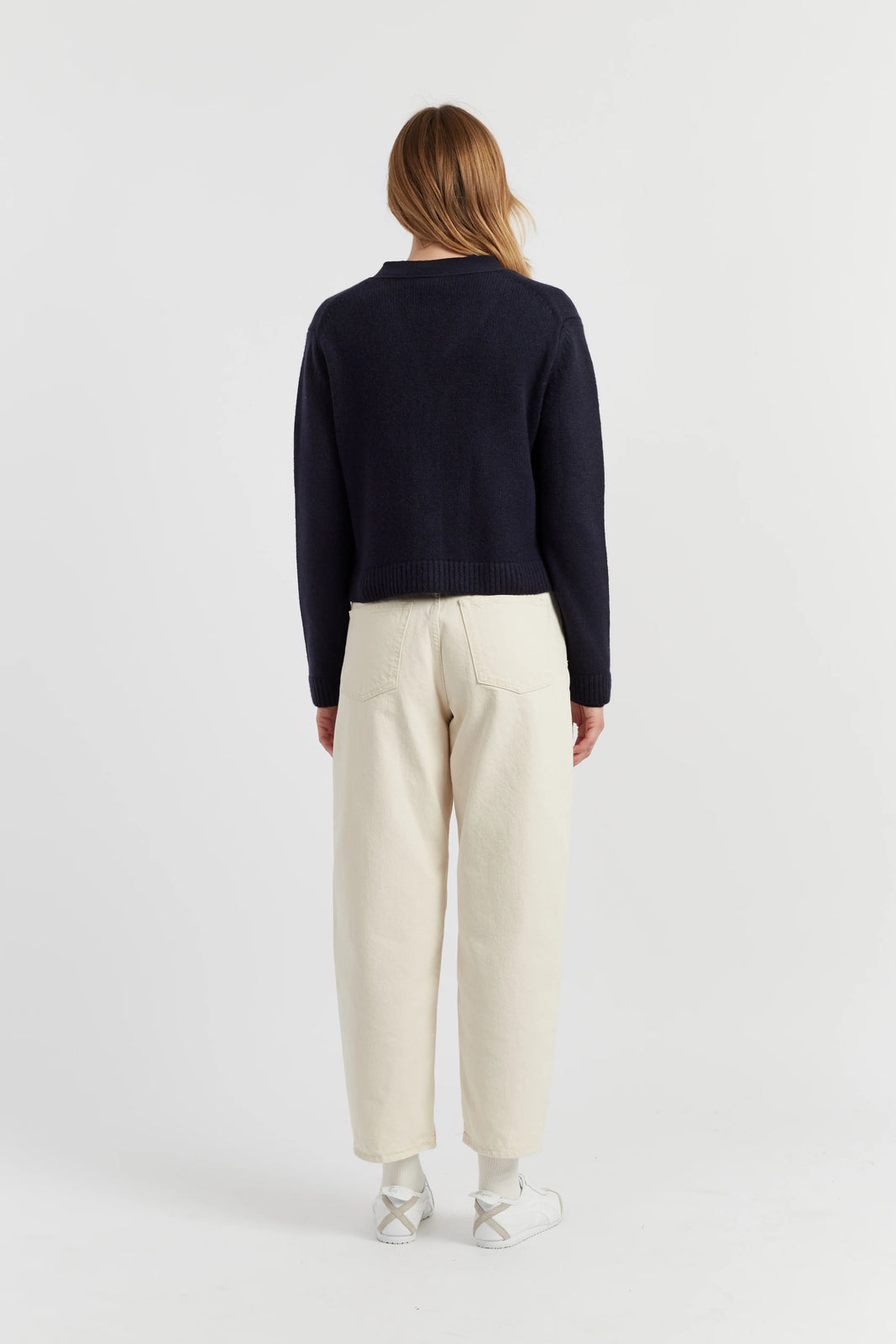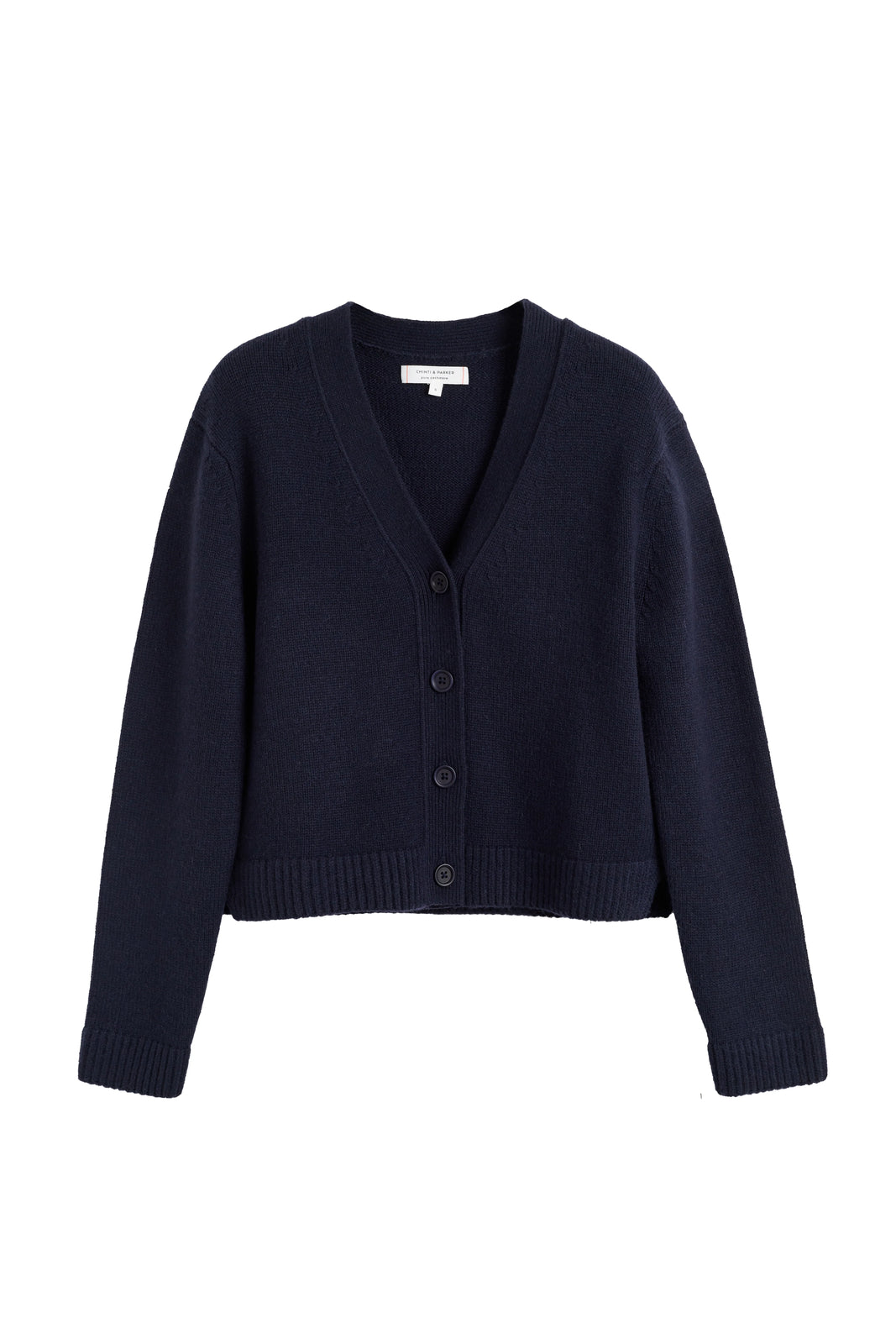The Navy Pure Cashmere Cardigan is a Cropped.