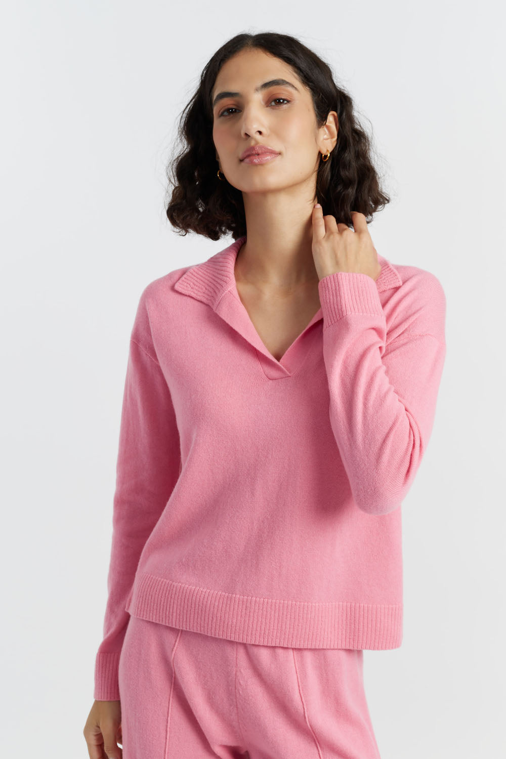SAMPLE SALE - NO REFUNDS Pink Wool-Cashmere Collared Sweater